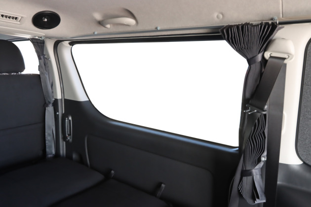 遮光性のあるカーテンを取付けてぐっすり就寝!200系ハイエース