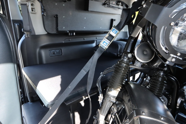 2WAYバックルを採用したことでバックルの位置も調整が可能になりました。バックルがバイクに近くなる位置で固定されると、タイダウンベルトを緩めた際にバックルがバイクに当たる可能性があります。ところが、この2WAYタイダウンベルトはバックルの位置を調整してバイクから遠ざけて固定することができるため、そのような不安を取り除くことができます!