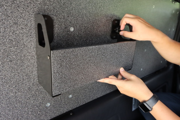 コンパクトに設計されているので今まで取付けることができなかったNV200バネット用ESウィンドウパネルに設置可能!窓スペースを活用して飲み物や充電コードなどをすぐ手が届く位置に収納しておくことができます。