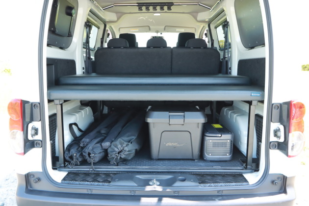 材質の性質上、強度を保つために縁を反り上げ加工しています。その反り上げ箇所にフロアぺネルを載せて使用します。そのため別売りの「NV200バネット バンGX ESフラットベッドシステム」との同時装着が必須となります。