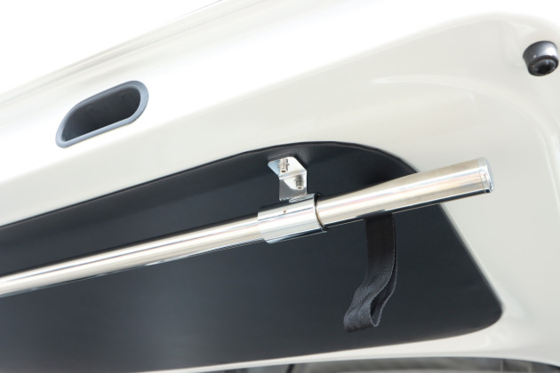 この位置にパイプラックがあることで、バックドアを開けた際車外・頭上あたりにラックが来る様になっています。サーフィンの後濡れたウェットスーツやタオルを掛けて干したり、釣り用のフローティングベストや着替えをかけてスムーズに準備をしたり、キャンプ場で周辺を照らすランタンや帽子などを吊るしたりと、遊びに合わせて使い方は様々!バックドアのユーティリティを広げてくれます。