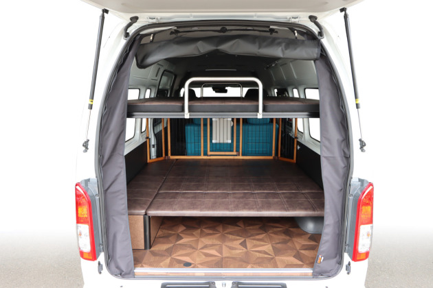 ハイルーフ天井空間を活かして2段ベッドを設置!200系ハイエース