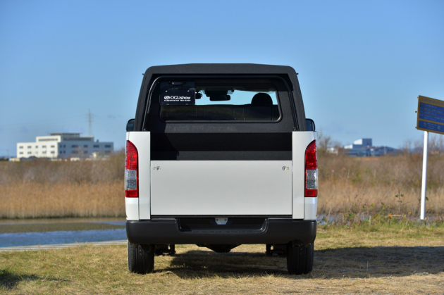 リアのテールゲートは、簡単操作で展開することが可能です。デッキの広さは、奥行き1620mm、幅1530mmというスペースが確保されています。なお、天井が存在しないため高さのある荷物も問題なく車輌に積載していただくことが可能です!