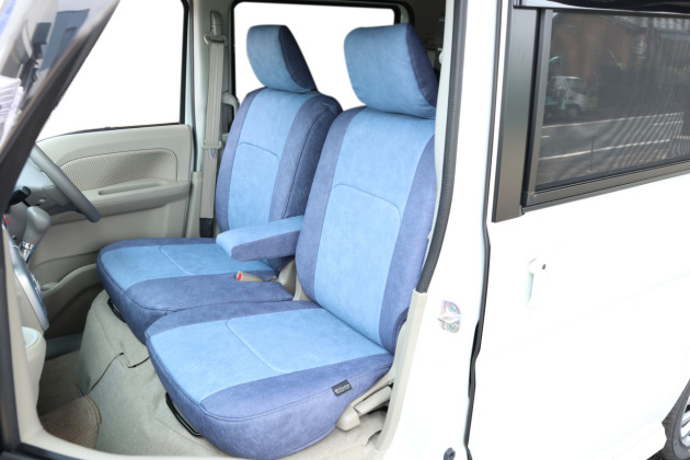 シート生地は、別売りのESフラットベッドシステムと同じ「ブルーレザーデニム」と「グリーンレザーデニム」の2種類をラインアップしています。