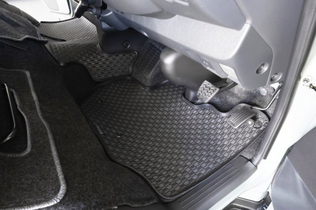 フロントシートとセカンドシートの足元にはESフロアマットEdgeを設置。フロアの保護効果はもちろん、マットの縁部分が15mm立ち上げた縁高モールで設計されているため、濡れたり汚れた足のまま乗車しても泥や水が飛散しにくく、汚れてしまっても簡単に洗い流すことができるアウトドアにぴったりなフロアマットです!