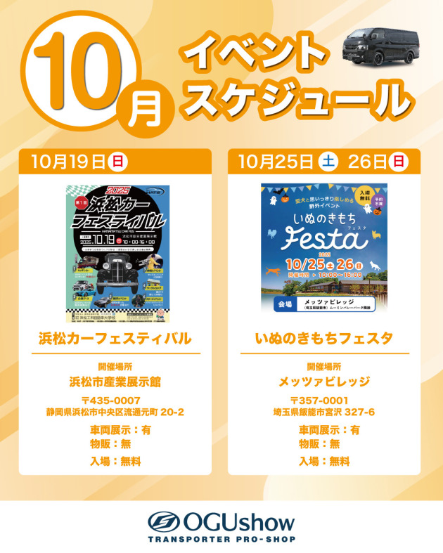 気温もやわらぎお出かけ日和な10月がスタート!そんな2025年10月にオグショーが出展するイベントを紹介。ぜひご家族でお越しください♪