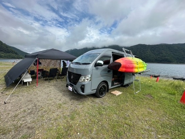 以前室内をキャンプ・車中泊仕様にカスタムさせていただいたキャラバン標準ボディハイルーフ車。オグショーカスタムにオーナー様オリジナルのカスタムが加わった世界に1台だけの車に仕上がっていて、カヤックを積んで湖畔車中泊キャンプや、冬にはスキー板を積んで雪山車中泊など1年中通してキャラバンでアウトドアを楽しまれているそうです♪