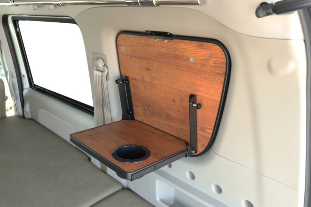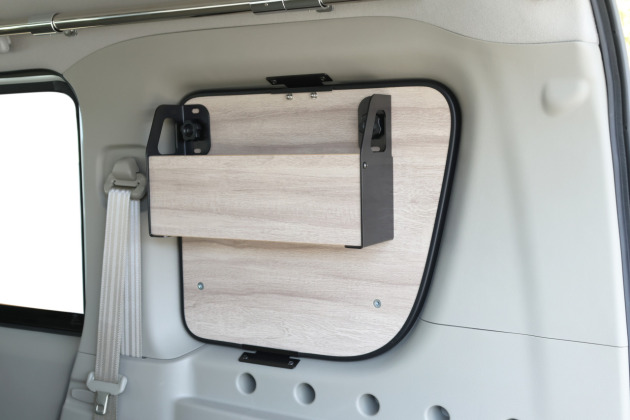 パネルには6個のM6ナットが埋め込まれているため、ナットを利用してオプションアイテムの装着が可能です。ES TXウィンドウパネルが収納スペースやテーブルに変わります。