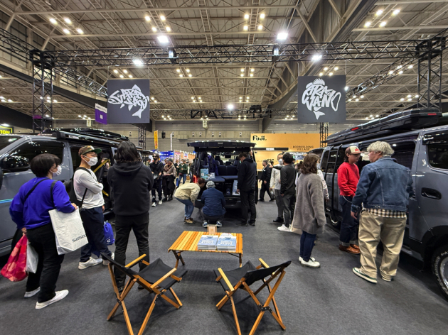 今年は日産自動車ブースにて釣り×キャラバンをテーマにした「NISSAN VAN CUSTOMIZE COLLECTION The 釣りキャラバン」が開催され、人気カスタムショップ3社(BodyLine、CRS、OGUShow)のこだわりが詰まったキャラバンが展示されていました。