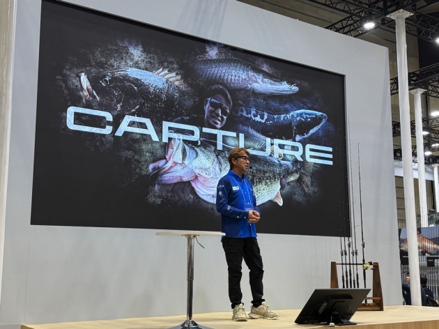 そんな奥田学さんが手がけるSHIMANO新製品ロッド「CAPTURE」を紹介するトークショーにお邪魔させていただきました。世界の巨大魚に挑むツーアーロッド「CAPTURE」の進化に注目です!