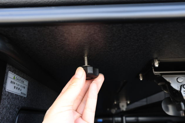 ベッドマットはベッドの裏面でボルト固定しているため、就寝中や移動中にずれたりする心配もありません。