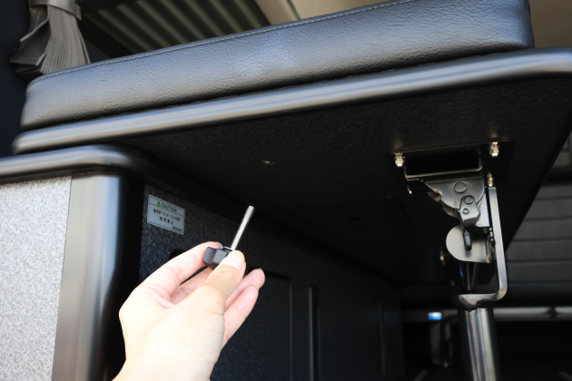 フリップベッドのベッドマット下部分にギャレーを製作、全面ベッド展開もできギャレーが必要な時はベッドマットを取外すことで簡単に展開が可能!
