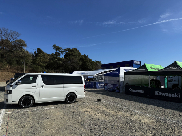 明日から開幕する全日本モロクロス選手権の会場、いなべモーターランドにイベントスタッフが会場に到着しました!大会名