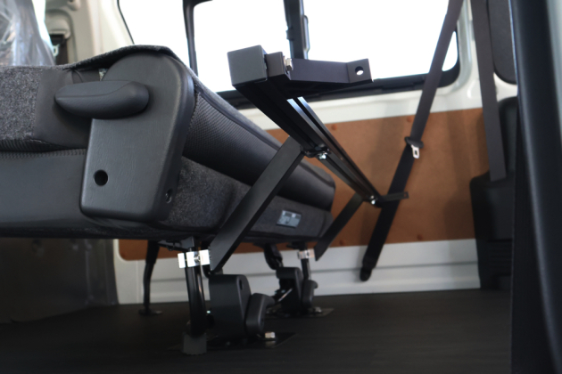ハイエースDXシートに取付可能!バイク固定用のタイヤスットッパー