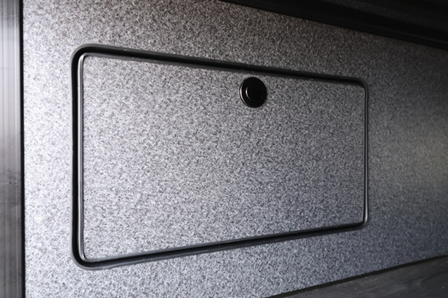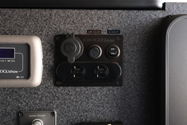 メインコントロールパネルと100Vコンセントなどは運転席側ベッドBOXの側面に取付け。