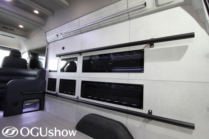 車内の凸凹を一切なくし、壁側面にはくり抜き加工をして