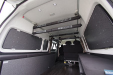 週末にウィンドサーフィンを楽しまれているオーナー様。ウィンドサーフィンのボードを積載するためにUIビークルから発売されているルームキャリアーを装着しました。 天井空間に装備されているため、車中泊する
