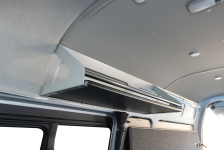 内張が装備されていない200系ハイエーススーパーロングハイルーフ車両に取付けることができるトレーです。ボディへ穴あけ加工を施して、ご自身で取付けていただける製品で、天井サイドが収納場所に変わります。
