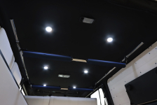 200系ハイエースの天井には白色カラーのLEDスポットライトを6個増設しました! 純正ライトは取り付けられている数も少ないので、光量がいまいち足りないと感じる人も 多いと思います。ライトを増設すれば
