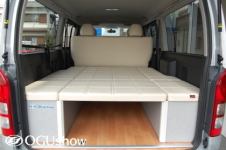オグショーの創業当初からほとんど形の変わらない「SHフラットベッド(B)」トランスポーターを作ろうと考えてベッドを悩んでいる場合、このベッドを取り付けることで「就寝」・「収納」と基本的な使い方が出来る