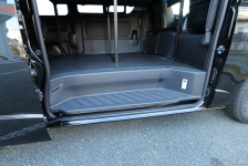 200系ハイエースワイドS-GLの床に施工しているのは、SH床貼り加工です。 今回は、乗車定員変更を施し(5人→2人)セカンドシートを取り除いたため床全体がフラットになっています。 運転席側 助手席